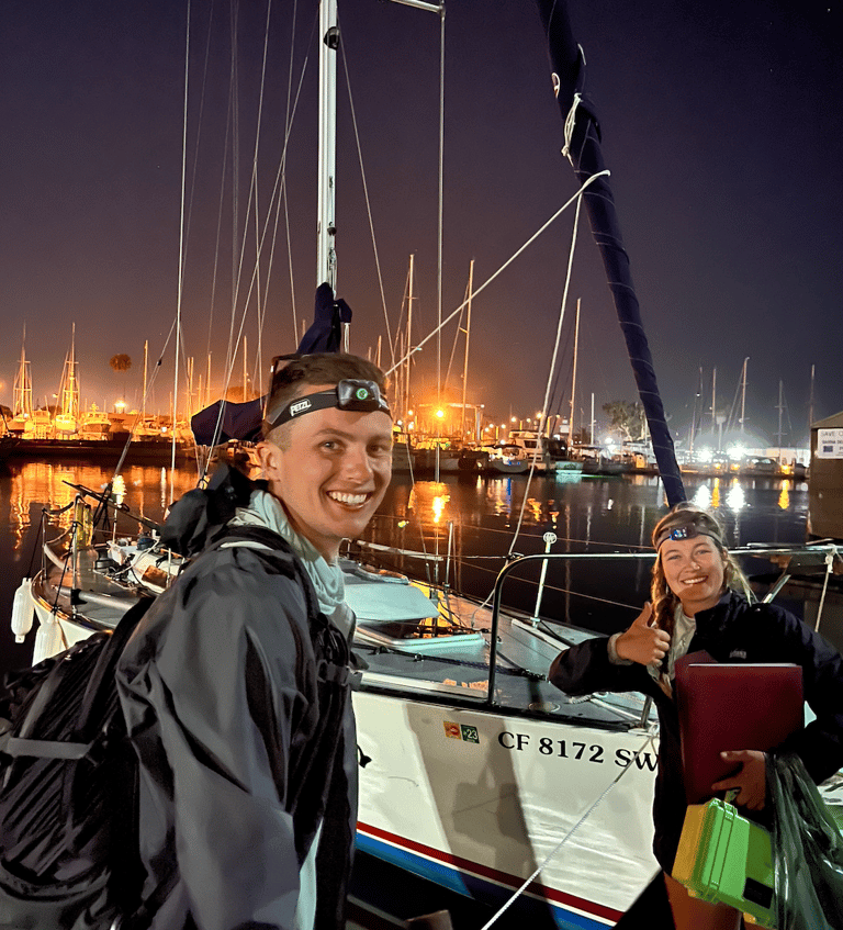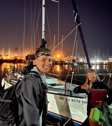 The headlamps came out as we prepared to navigate the home stretch into MDR. Trying to tee up to 3-4ft swell was challenging when the waves didn't become visible until you could pretty much taste their spray, but everyone helped out by keeping their heads on a swivel. We also had the pleasure of two massive tankers lighting the way. We carefully made our way past the breakwater in the dark, looking closely between the unlit buoys and our depth charts. After a few minutes of chugging through the marina, we made it! Our crew was polite and didn't immediately kiss the ground and swear off sailing forever, but there was certainly some relief to put an end to the long day.